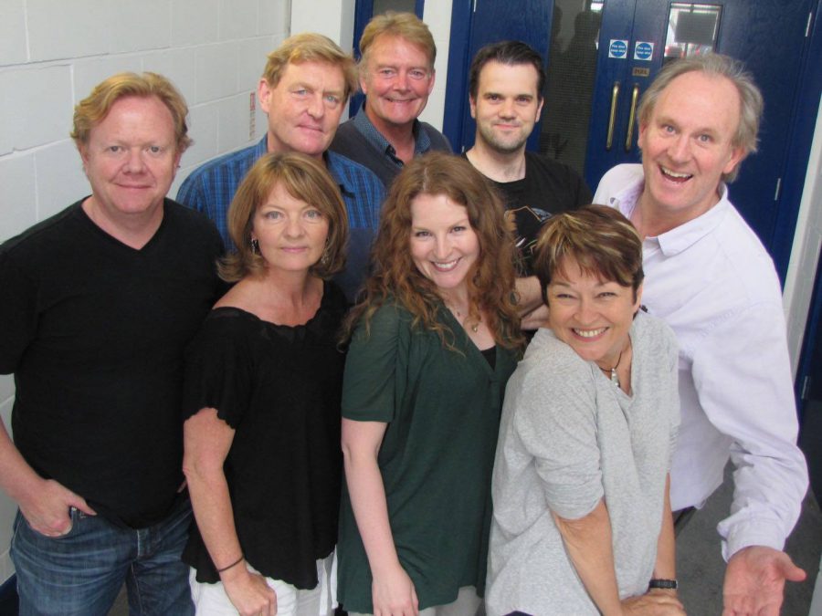 The cast of ‘The Entropy Plague’. From left to right: John Voce, Sarah Sutton, Mark Strickson, Robert Duncan, Catherine Skinner, Chris Finney, Janet Fielding and Peter Davison.