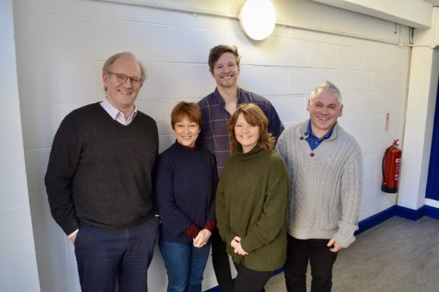 Peter Davison, Janet Fielding, George Watkins, Sarah Sutton and Matthew Waterhouse in ‘The Lost Resort’.