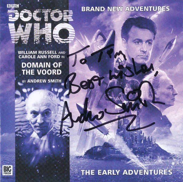 In January 2015, I attended the ‘Big Finish Day 6’ convention in Slough. I had a nice time attending that convention. Whilst there, I purchased the ‘Early Adventure’ called ‘Domain of the Voord’ by Andrew Smith. I even had the CD cover of that story signed by Andrew. It was great to have it signed.