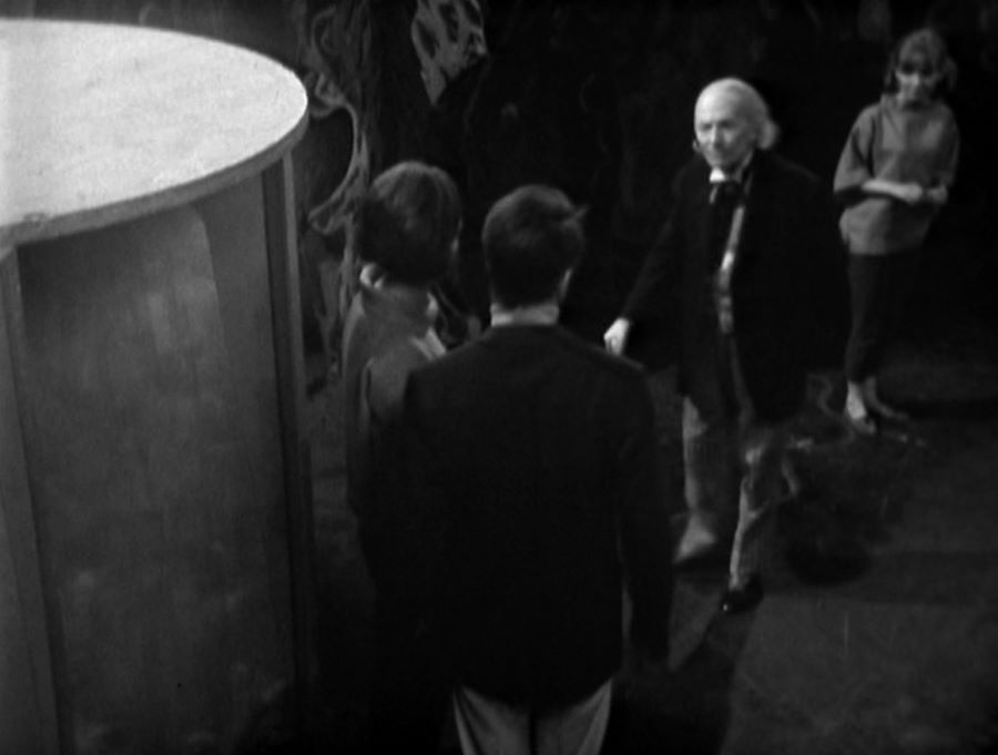 Still, Barbara, you shouldn’t have said the Doctor’s singing is awful. You must have hurt his feelings by now. 😀 Actually, she’s referring to ‘awful noise’ made by the Time-Space Visualiser, as it’s still switched on. Clearly, Vicki didn’t do a very good job switching off the dratted machine when told to.