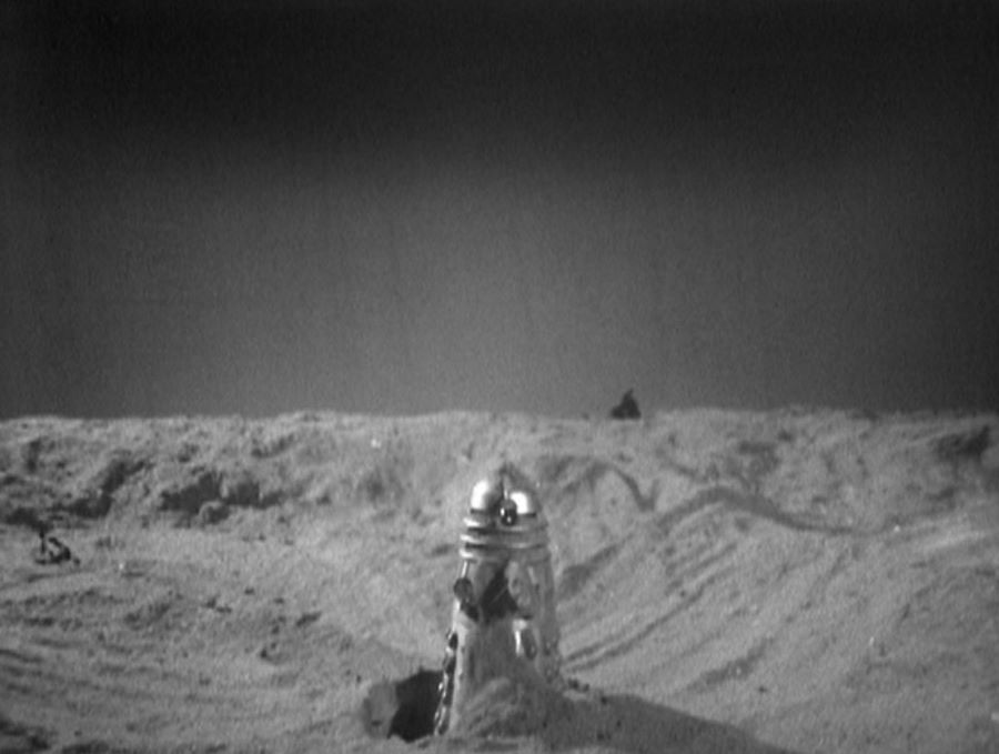 Joking aside, I think it would have been better to have shot the Dalek rising up from the sand in a close-up shot. After all, we saw the Dalek coming up out of the waters of the Thames in ‘The Dalek Invasion of Earth’ close enough compared to viewing a Dalek rising up from the sand in the distance.
