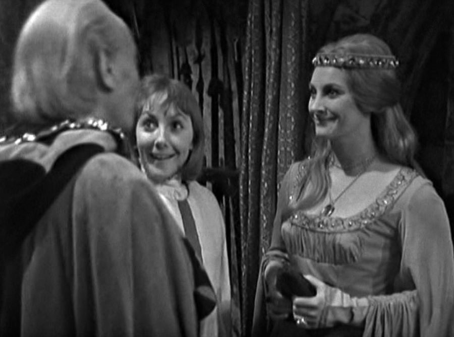 Vicki’s pretence as a page boy is soon discovered when Princess Joanna enters and overhears the Doctor and Vicki’s conversation about it in the story’s third episode. I liked it when Vicki begged Joanna not to be angry with him and the Doctor for deceiving everyone about her being a page boy.