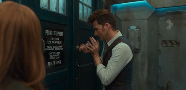 The Doctor speeds up the countdown and we’re now on the number ‘Blinss’. Donna and her doppelgänger end up tussling with each other whilst the Doctor chases the Not-Thing Doctor. After ‘Sensill’ is declared, the hostile action is resolved. The TARDIS returns, materialising for the Doctor. 🙂