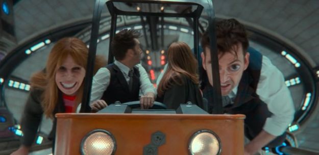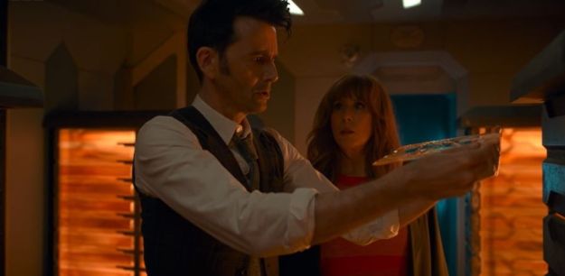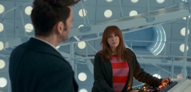 The real Donna calls out to the Doctor, insisting that he’s got the wrong one. I found it tense when that revelation happened in the story, and I was afraid the Doctor was going to end up taking the Not-Thing Donna back to Earth and the real Donna would be blown up in the exploding spaceship. 😐