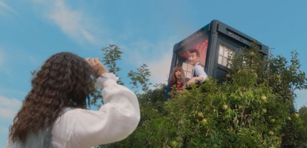 It starts with a teaser sequence where the Doctor and Donna in the TARDIS end up crashing into an apple tree in England in the year 1666. It’s where they come across Nathaniel Curtis as Isaac Newton. Nathaniel Curtis has worked with RTD before, as he did the Channel 4 miniseries ‘It’s a Sin’.
