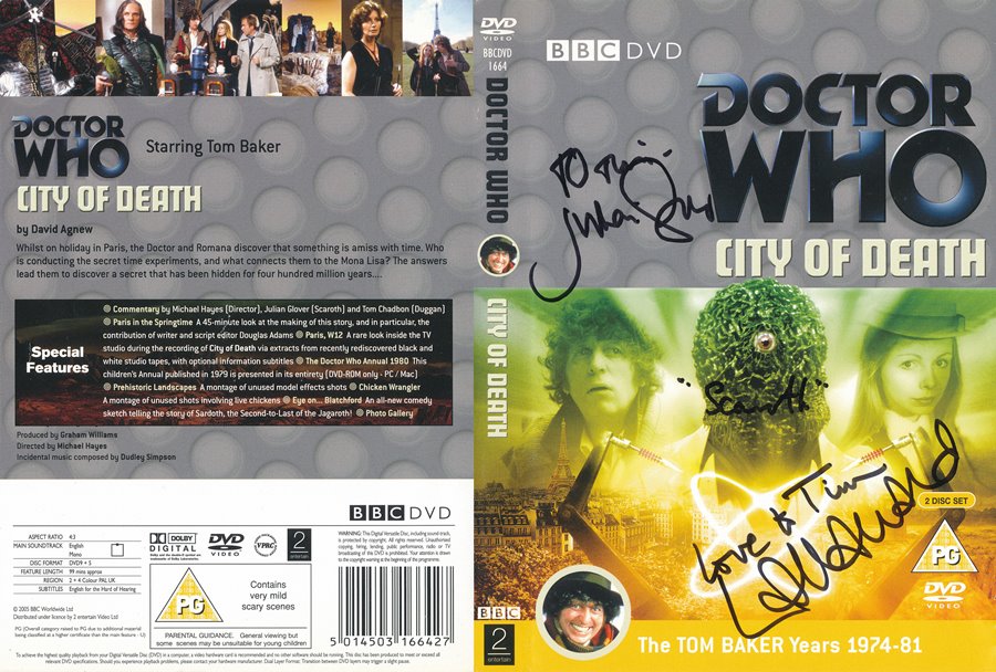 city of death signed by lalla ward and julian glover ← Previous Next → Tim Bradley’s DVD cover of ‘City of Death’ signed by Lalla Ward and Julian Glover Like Loading...