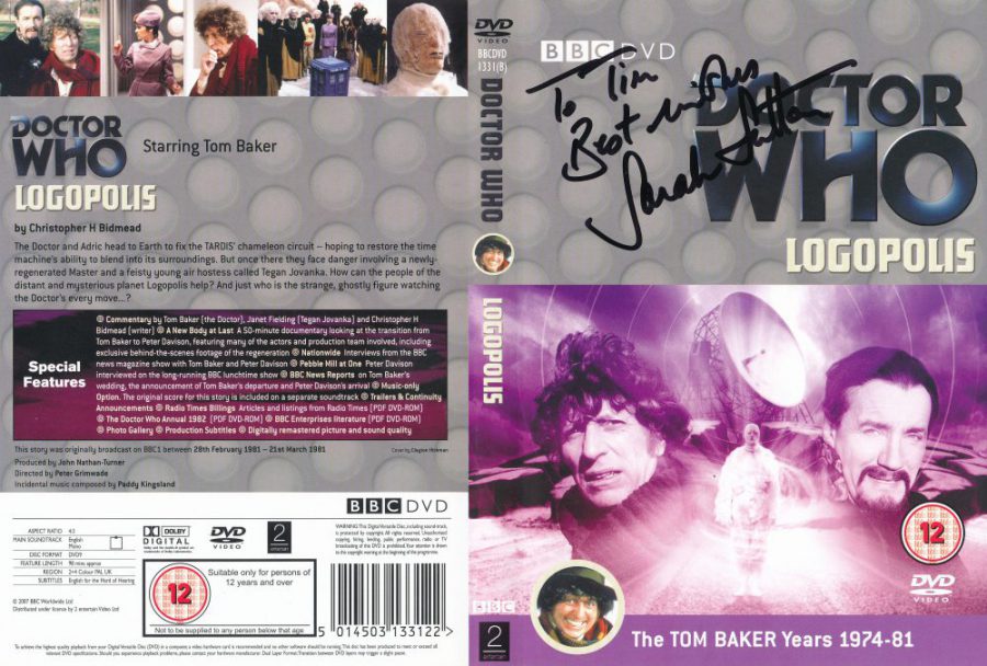 logopolis signed by sarah sutton ← Previous Next → Tim Bradley’s DVD cover of ‘Logopolis’ signed by Sarah Sutton Like Loading...