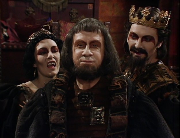 The vampires are as follows. There’s William Lindsay as Zargo the King; Rachel Davies as Camilla the Queen and Emrys James as Aukon the Councillor. Zargo and Camilla are rather keen on devouring somebody’s blood but Aukon always seemed to be restraining before the time of ‘the arising’ comes.