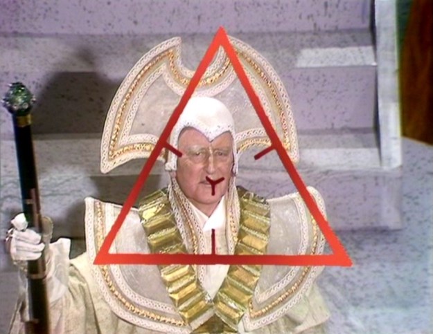 Incidentally, I liked it when Tom Baker’s Doctor got to dress up as a cardinal, donning that Time Lord garb and collar, during the Presidential ceremony (more on costumes in a bit). Seeing Tom Baker’s Doctor in Time Lord robes was so remarkable, even if it’s for a short time in one episode of the story.