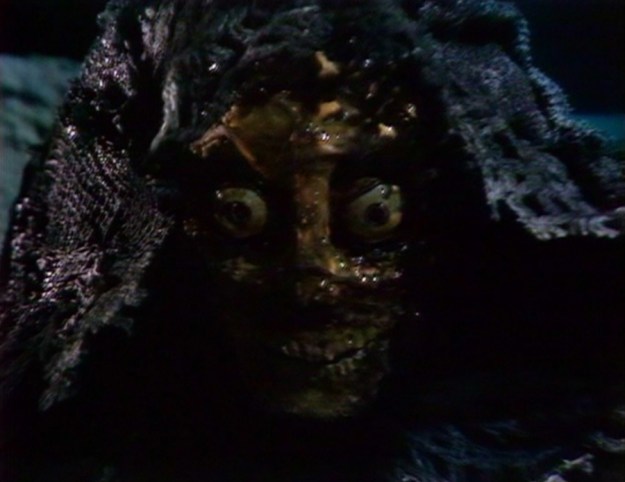 The Master returns to ‘Doctor Who’, now played by Peter Pratt. Robert Holmes decided to do a new version of the Master, following the original played by Roger Delgado who sadly died in 1973. Holmes’ new interpretation of the Master is a decaying corpse and he does appear so ghastly in this.