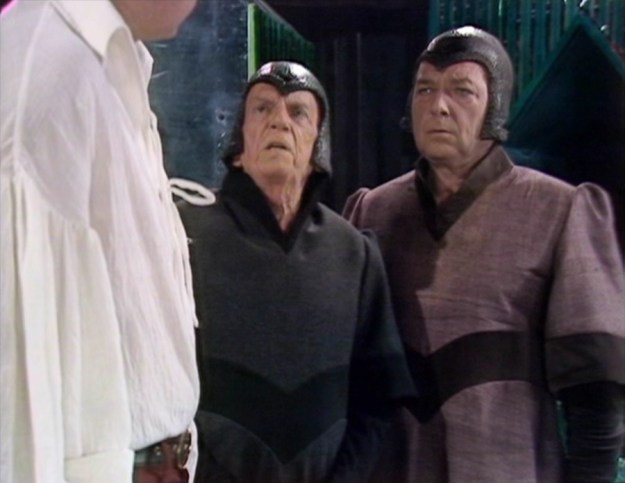 I don’t know how the actors who played the Time Lords in ‘The Deadly Assassin’ managed to cope with wearing those cumbersome costumes. The collars they wore must’ve been very uncomfortable. They do look grand and impressive though. It’s an image of the Time Lords that’s recognisable today.