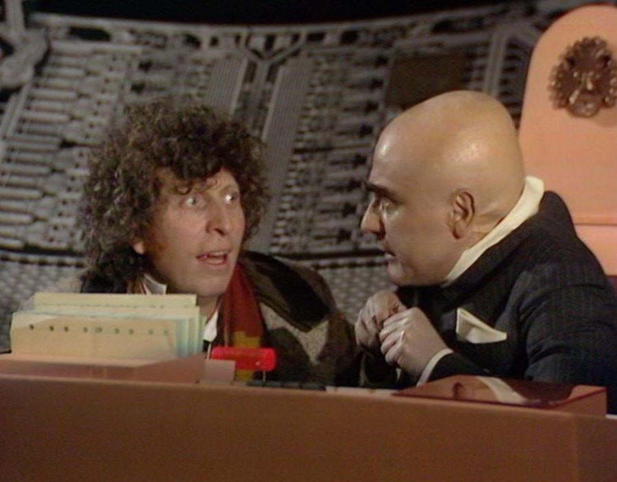 Perhaps the Doctor should go back and check out the Pluto population from ‘The Sun Makers’ someday. He could prevent more people being thrown off buildings to their deaths. 😀 Tom Baker and Louise Jameson excel in this story, and I enjoyed Tom Baker’s scenes with Henry Woolf as the Collector.