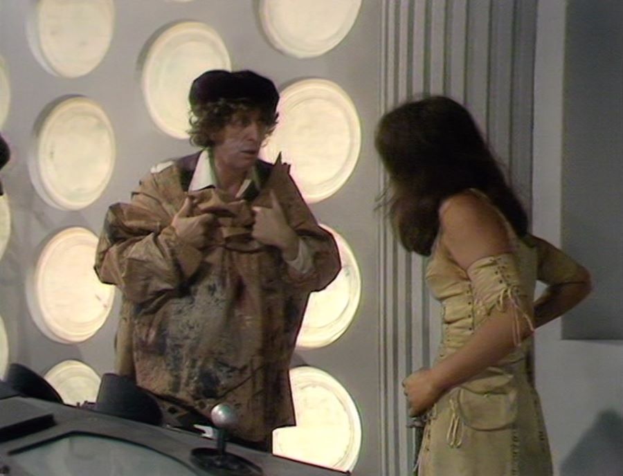In terms of the character, well, there’s the revelation he makes to Leela that the Time Lords and the Minyans crossed paths with each other, and it was intriguing to see and hear his stance on it. When Idas asks the Doctor if he’s a god, he claims not to be, which is intriguing, considering he’s a Time Lord.