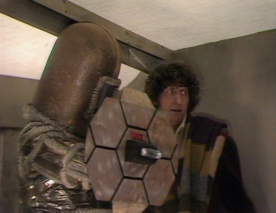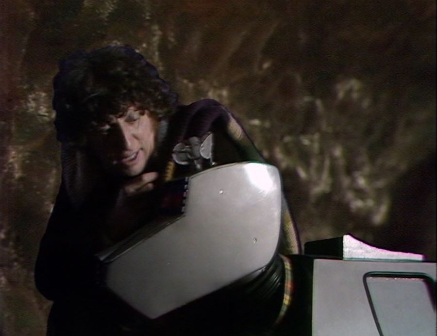 There are also moments that K-9 has in the story where he uses his nose laser, particularly on breaking through a cave wall so that the Doctor, Leela and Idas could get out of the fix they’re in. I think it’s fair to say that K-9 is more functional in this ‘Doctor Who’ story than having a character-driven journey. 😐