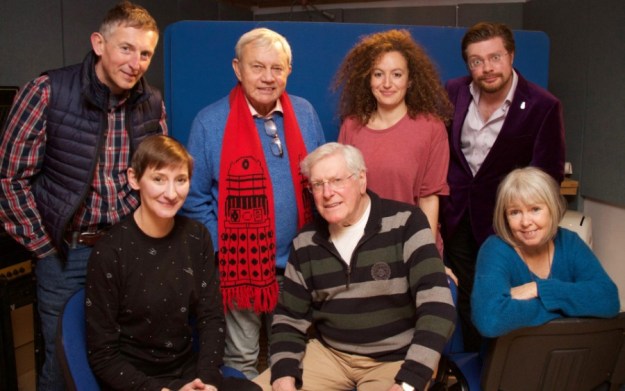 Producer David Richardson, Laura Elphinstone, Frazer Hines, Peter Purves, Ajjaz Awad, writer David K. Barnes and Wendy Padbury in ‘Daughter of the Gods’.