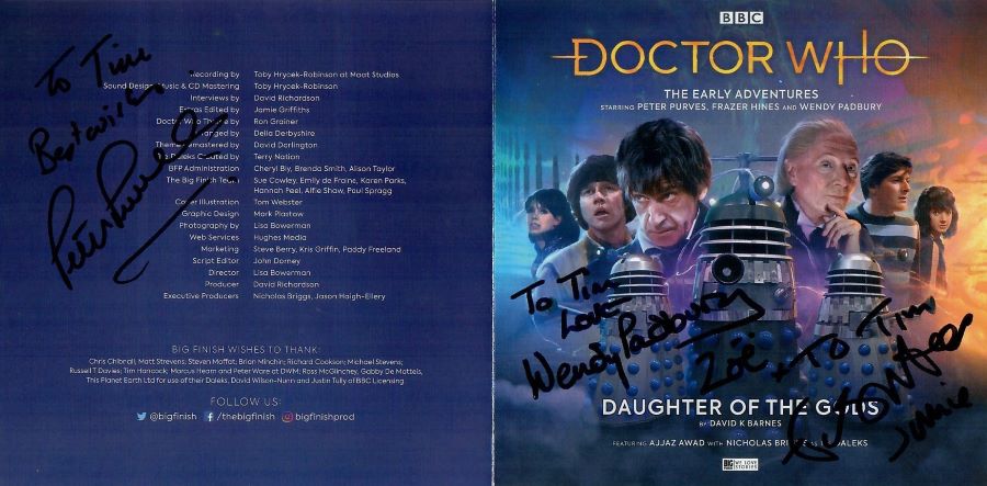 daughter of the gods cd cover signed by peter purves, frazer hines and wendy padbury ← Previous Next → Tim Bradley’s CD cover of ‘Daughter of the Gods’ signed by Peter Purves, Frazer Hines and Wendy Padbury Like Loading...