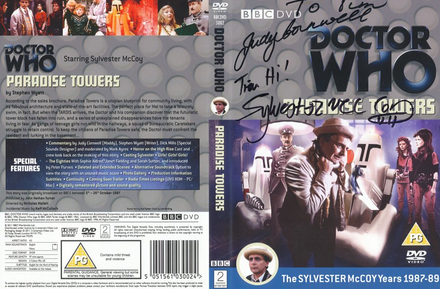 Paradise Towers (signed by Sylvester McCoy and Judy Cornwell) ← Previous Next → Tim Bradley’s DVD cover of ‘Paradise Towers’ signed by Sylvester McCoy and Judy Cornwell Like Loading...