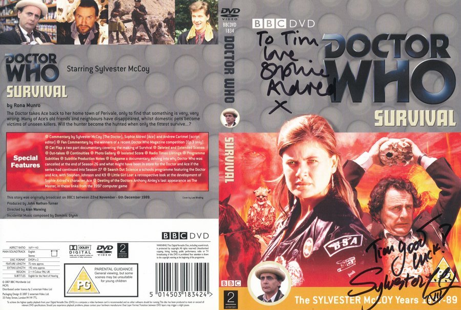 survival dvd signed by sylvester mccoy and sophie aldred ← Previous Next → Tim Bradley’s DVD cover of ‘Survival’ signed by Sylvester McCoy and Sophie Aldred Like Loading...