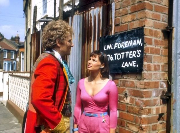 In the story itself, the Doctor and Peri are in the TARDIS when they detect a strange alien signal emanating from the planet Earth. They track the signal to London, 1985. Soon, the Doctor and Peri arrive in an urban setting, as the TARDIS ends up in 76 Totter’s Lane. A place familiar to the Doctor. 🙂