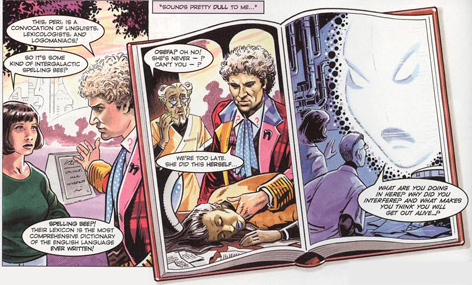 The story goes like this. The Doctor and Peri visit a university on an alien planet where a conference of lexicographers is about to take place. But a murder takes places as the leading lexicographer is seemingly killed before the conference begins. The Doctor investigates to learn what this is all about.