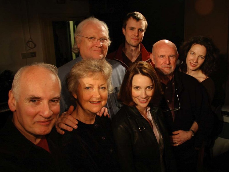 The cast of ‘The Hollows of Time’. From left to right: Trevor Littledale, Susan Sheridan, Colin Baker, Nicola Bryant, Hywel John, David Garfield and Victoria Finney.