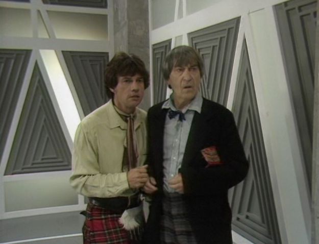 The inclusion of the Second Doctor and Jamie into this story happened when JNT witnessed Patrick Troughton and Frazer Hines’ return to ‘Doctor Who’ in ‘The Five Doctors’. Patrick and Frazer enjoyed being in each other’s company again, so it was decided to have them back for another ‘Doctor Who’.