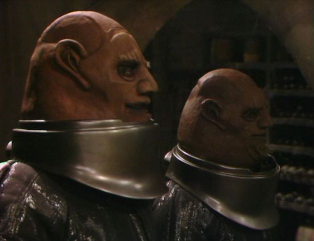 I can imagine how hot and sweaty they must have been after taking the Sontarans’ headgear and suits off. Looking back, I don’t suppose ‘The Two Doctors’ is the best story to showcase the Sontarans, as there are only two of them. We only a see a Sontaran invasion fleet from a distance. 😐