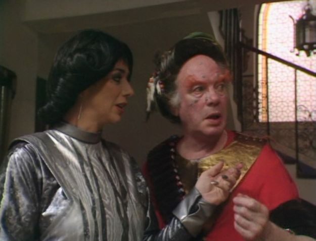 This ‘Doctor Who’ story also features Jacqueline Pearce (of ‘Blake’s 7’ fame) as the evil Chessene along with the monstrous Sontarans. I hadn’t seen ‘Blake’s 7’ then, so I didn’t know Jacqueline Pearce had played an equally evil woman in Servalan when it came to watching this ‘Doctor Who’ story.
