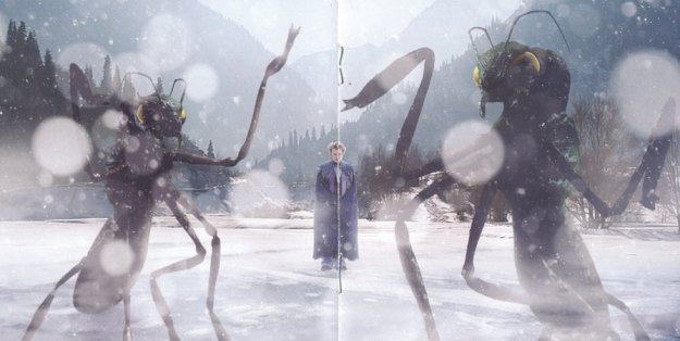 The snowy aspects to this story help too. Sometimes our characters have trudge through snowstorms to get to a certain place. Either Flip and/or the Doctor and Veronica have to outrun the Wirrn chasing after them. It’s also so tense when the Wirrn’s legs get mistaken for branches in snow.