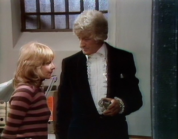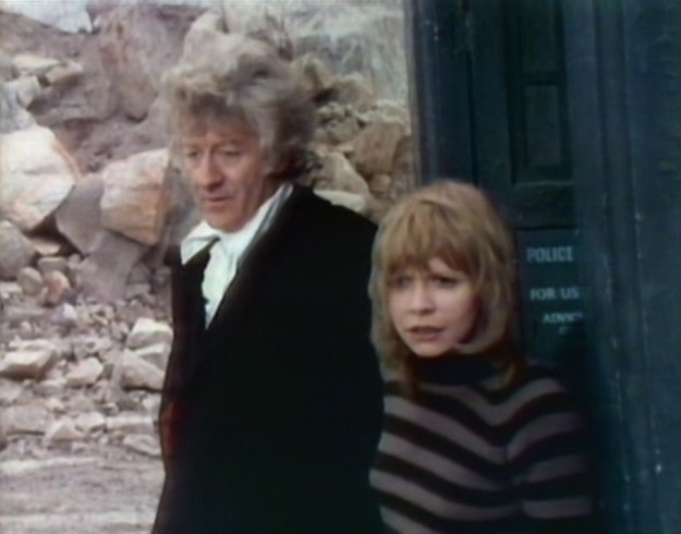 Jo clearly shows compassion in this adventure, especially when the colonists are being threatened and she becomes worried about the Doctor whenever he goes missing or is captured by the Master. Jo and the Doctor discover the primitives’ city when they have been brought there against their will.