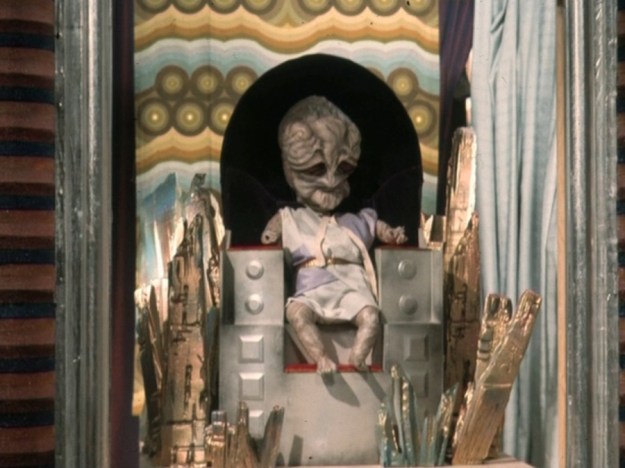 The primitives’ make-up and costumes are also rather dodgy when looking at them, especially when the actors are wearing skin-tight costumes. There are the green bipedal primitives that capture the Doctor and Jo; the blind, dwarf-like priests; and the babyish troll-like Guardian that can actually talk.