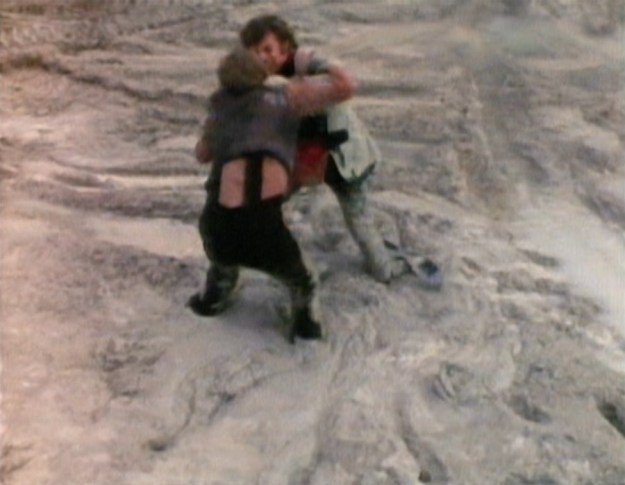 It was amusing to see Winston have a fight with an IMC guard (played by stuntman Terry Walsh) in the muddy china clay quarry. I can imagine how cold that mud must have been when Nicholas Pennell and Terry Walsh as their characters fought each other. I don’t fancy being in all of that muck.