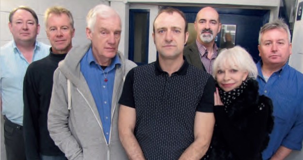 The cast and crew of ‘Prisoners of the Lake’. From left to right: writer Justin Richards, Robbie Stevens, Richard Franklin, Tim Treloar, director Nicholas Briggs, Katy Manning and John Banks.