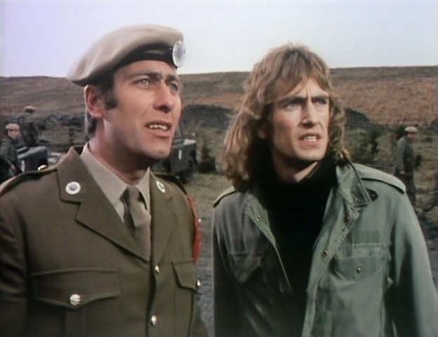 The UNIT team were great as usual. Sergeant Benton had quite a few funny moments in the story, such as telling a couple of soldiers off, calling out to the maggots and getting the words wrong when people started singing “For he’s a jolly good fellow” in the final scene. I must admit that I found it hard to work out whose side Mike Yates was on. I take it his betrayal doesn’t happen until Season 11. I found it weird that some scenes set in that land field were done on location, whilst others were done on CSO. Maybe the budget ran out as the Brigadier was present in the location shots.