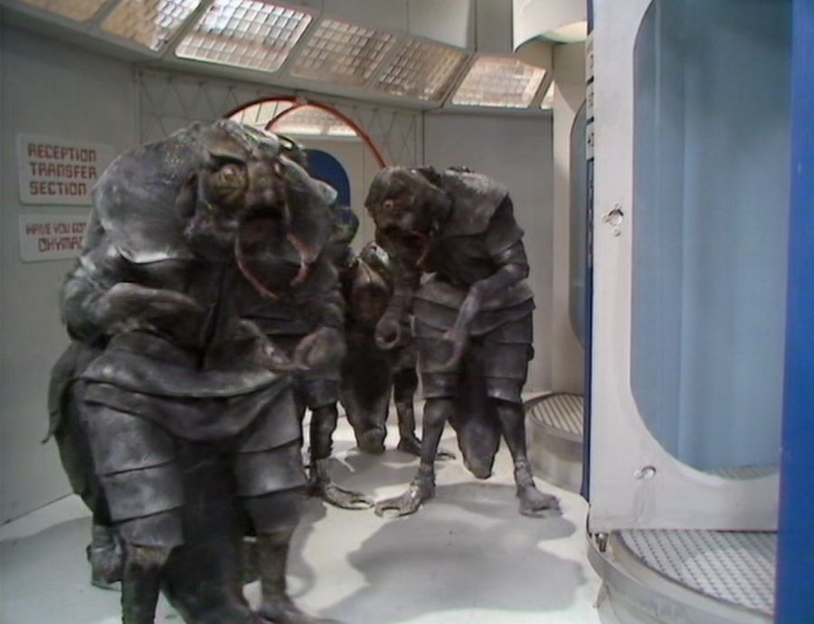 It turns out that this certain Earth Empire has come to an end in this ‘Doctor Who’ story. There’s colonial oppression occurring between the Solonians and the humans – who have been given the name ‘Overlords’ by Solos’ inhabitants. There isn’t much love between the Solonians and humans. 😐