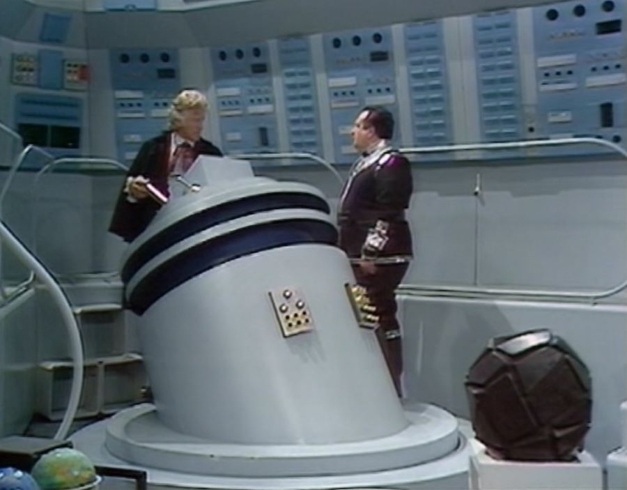Once the Doctor receives the spherical pod, he goes off on a mission with Jo accompanying him to deliver it to someone. Apparently, the pod can only be opened by the person the Doctor gives it to. The TARDIS ends up on a space station called Skybase One, which is in orbit of a planet named Solos.