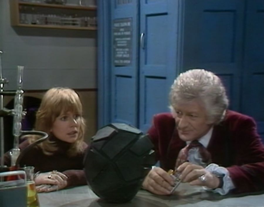Anyway, the Doctor receives a spherical pod sent to him by the Time Lords when he and Jo are at U.N.I.T. HQ. I don’t quite understand why it had to be a spherical pod. Surely, it would have been better to have sent the Doctor a small rectangular box to contain – spoiler alert – the tablets inside.