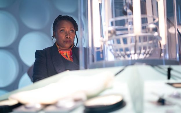 Anyway, whilst Graham, Ryan and Yaz were with Captain Jack, the Doctor escorts Ruth Clayton to safety. Lee got killed by the Judoon’s employer, Rita Arya as Gat, when he surrendered in the story. 😦