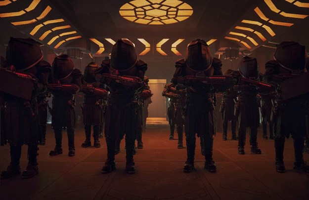 Judoon with the Thirteenth Doctor, Graham, Ryan and Yaz