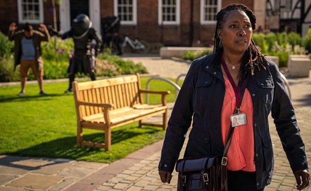 The Doctor sees the Judoon are about to attack Lee and Ruth Clayton at their apartment whilst she and her friends Ryan and Yaz try to stop them. Where is Graham though? I’ll get back to him in a bit.