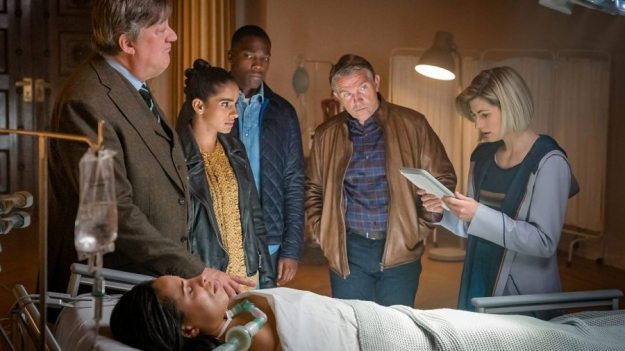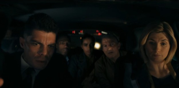 There is a scene between Graham, Ryan and Yaz where they have a respite in a warehouse. They talk about who the Doctor is. I liked that scene! It establishes they don’t know much about the Doctor in spite of the travels they’ve had with her. They want to know who she is the next time they meet her.