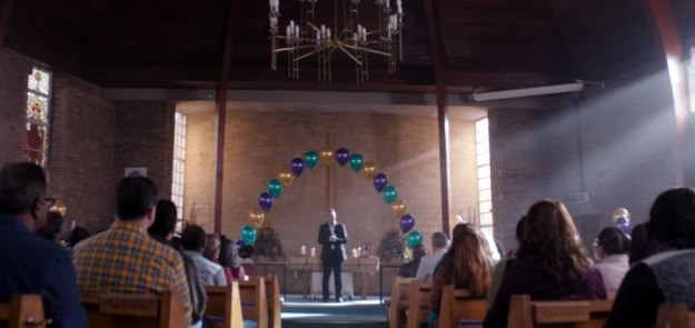 This of course all leads to a funeral in…oh my goodness! Is that St. Mark’s Church in Gabalfa, Cardiff?! It is! They filmed a funeral scene in St. Mark’s Church!!! I know that place! I’ve been there!