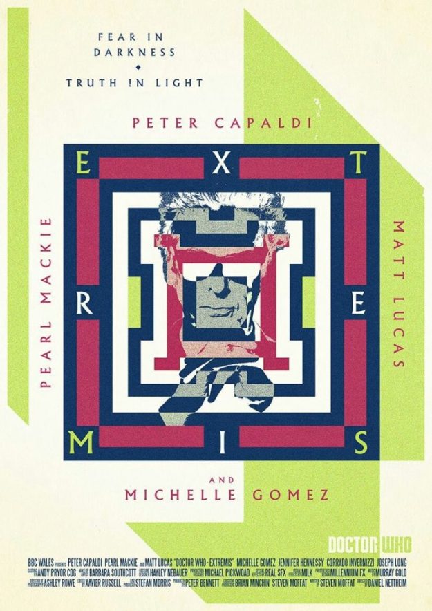 The DVD/Blu-ray special features for this episode are as follows. There’s the ‘Extremis’ – Inside Look’ behind-the-scenes featurette, and there’s the ‘Doctor Who: The Fan Show – The Aftershow’ edition for ‘Extremis’.