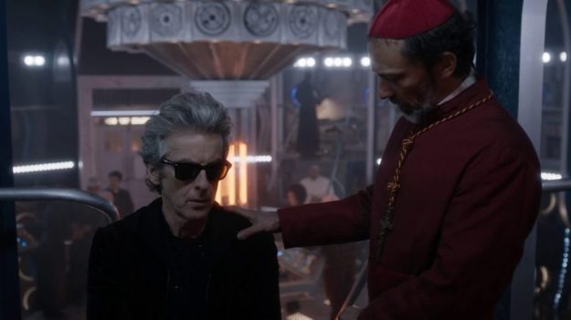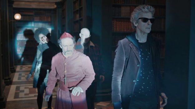 There was a lot going on in this episode with the Doctor, Bill and Nardole visiting the library. Cardinal Angelo escorts them and gives lots of exposition on what’s going on with the Vatican and the Veritas.