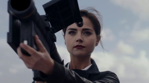 Fortunately Clara gets to save the Doctor and Osgood inside their plane by making Bonnie miss her shots with the rocket gun. Whilst the plane does blow up, it gives the Doctor and Osgood an escape.