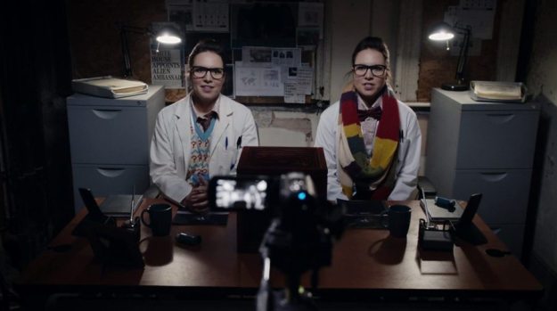 There’s Bonnie representing the Zygons at the blue box and there’s Kate representing the humans at the red box. Both are ready to press the buttons at their ends. And thus we have the greatest scene!