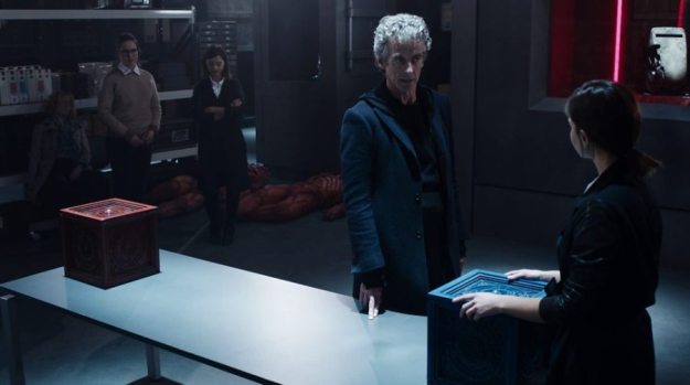 Eventually, the Doctor, Kate Stewart and Osgood arrive at the Black Archive where they confront Bonnie with the Zygons holding Clara hostage out of her Zygon pod. Two opponents got to each box.