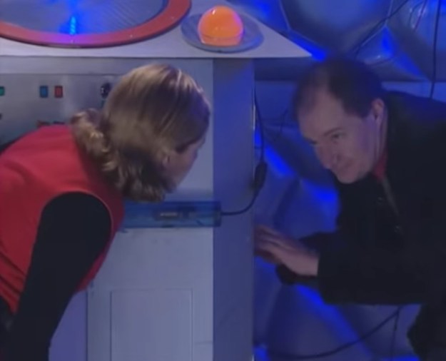 The Master also gets…Dalek bumps…on his chest? They come across as him having breasts to which he denies, saying they’re ‘aetheric beam locators’ or something. I don’t think that’s appropriate even for a Comic Relief spoof. I liked it when the Master fell through a hole and got older and older.