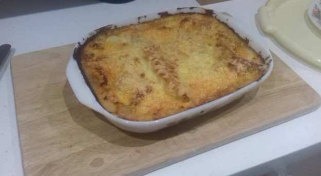 Tim’s lasagne based on Sarah Sutton’s recipe in ‘The Doctor Who Cookbook’ in February 2020