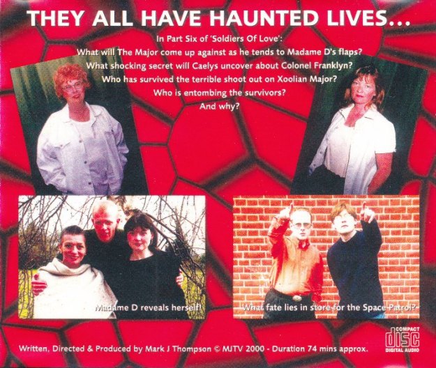 When I saw Sarah Sutton at the ‘Stars of Time’ convention in August 2016, she looked at the CD cover for ‘Haunted Lives’ and recognised Jacqueline Pearce. I don’t think Sarah had any scenes with Jacqueline in ‘Soldiers of Love’. She would later work with her in the ‘Doctor Who’ audio story ‘Hexagora’.